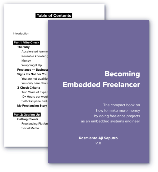 Unlock multiple income streams as an embedded engineer, by becoming an embedded freelancer. Learn how to earn more money (even more than your main job) working on freelance projects using a proven path explained from an embedded engineer's point-of-view. More info here: freelancer.rosmianto.com